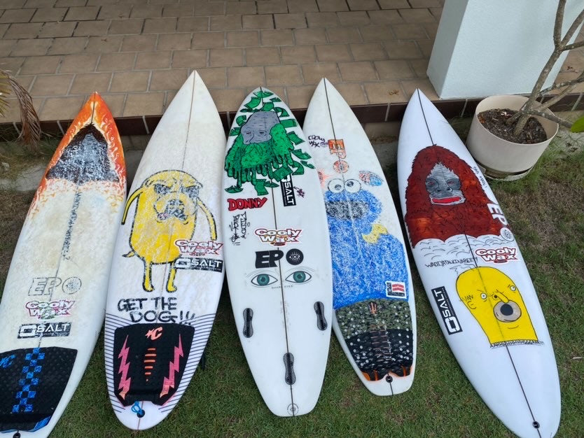 I love drawing cartoon characters, I can draw a lot of random crazy things but cartoon characters always look cool on a surfboard!